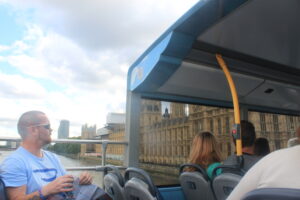 Trải nghiệm du lịch trên xe buýt vòng quanh thành phố là một trải nghiệm khá được chào đón khi đến thăm thủ phủ London, Anh Quốc. Tôi mỗi lần ghé thăm London là sẽ dành một ngày trải nghiệm xe buýt Hop-On-Hop-Off bởi vì nó thực sự là quá tiện nghi và tuyệt vời. Thuật ngữ “hop on” mang nghĩa “nhảy lên”, và “hop off” mang nghĩa “nhảy xuống” miêu tả đơn giản mà chính xác cách chúng ta đi tham quan thành phố bằng loại phương tiện này. Vì ở London, thành phố có hệ thống giao thông rất tốt. Ngoài hệ thống tàu điện ngầm (gọi là “tube”) thì hệ thống xe buýt có nhiều trạm dày ở các địa điểm, khiến cho việc di chuyển vô cùng dễ dàng. Bạn có thể nhảy lên xe để đi ngắm cảnh và nghe giới thiệu về London một hồi, chọn địa điểm bạn muốn xuống thăm hay đi ăn uống, sau đó là chờ tuyến tiếp chiếu theo lịch chạy theo tuyến để đi qua điểm khác.